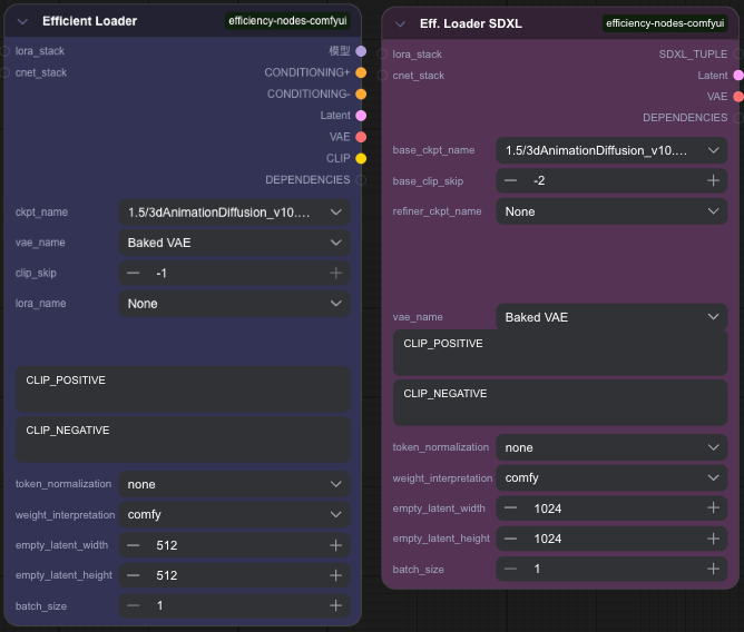 - Variants: "Efficiency Loader" (basic) + "Efficiency Loader (SDXL)" (for SDXL models).
