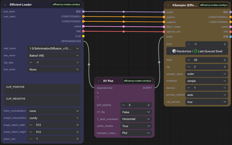 - Link XY Chart’s "Script" output to the sampler’s "Script" input.